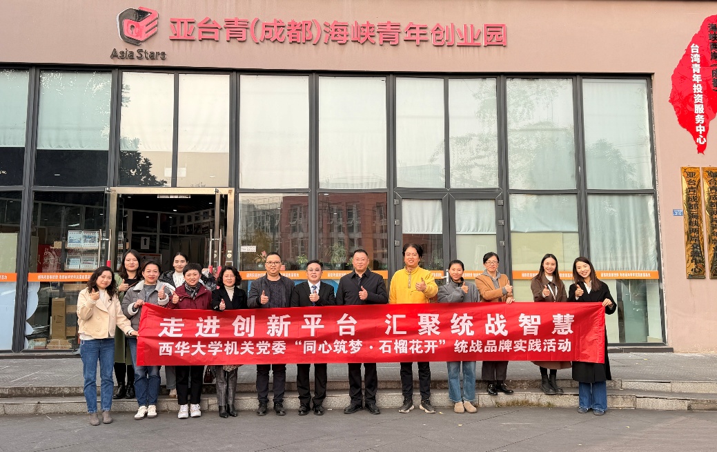 为充分发挥统一战线优势,增进党外人士对地方发展及对海峡两岸青年创新创业现状的了解,积极搭建校地合作桥梁,11月25日,机关党委组织民主党派成员、无党派人士及少数民族教职工代表共12名统战成员赴亚台青(成都)海峡青年创业园,开展“同心筑梦·石榴花开”统战品牌实践活动。